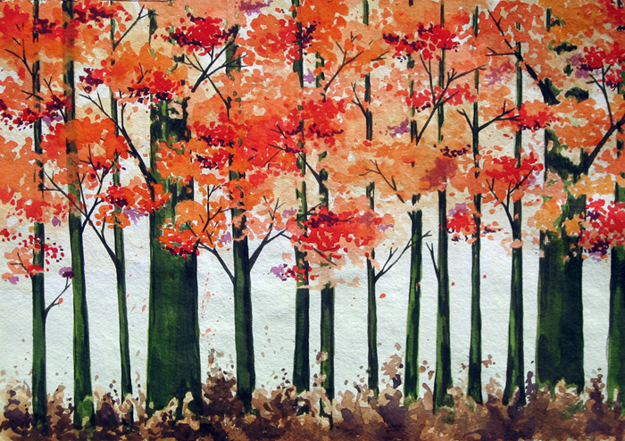 Autumn leaves in watercolour